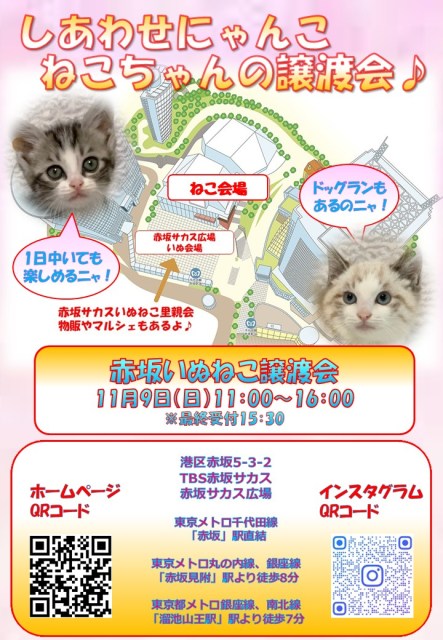 第340回 11月9日(日) 赤坂いぬねこ譲渡会に参加します♪